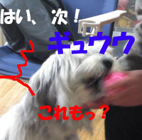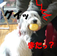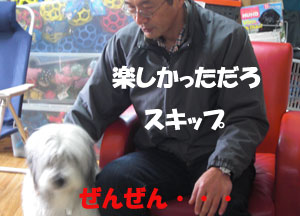 白羽の矢は会長さんの犬、スキップに。 スキップ、 大喜びでした・・・途中まで。 |